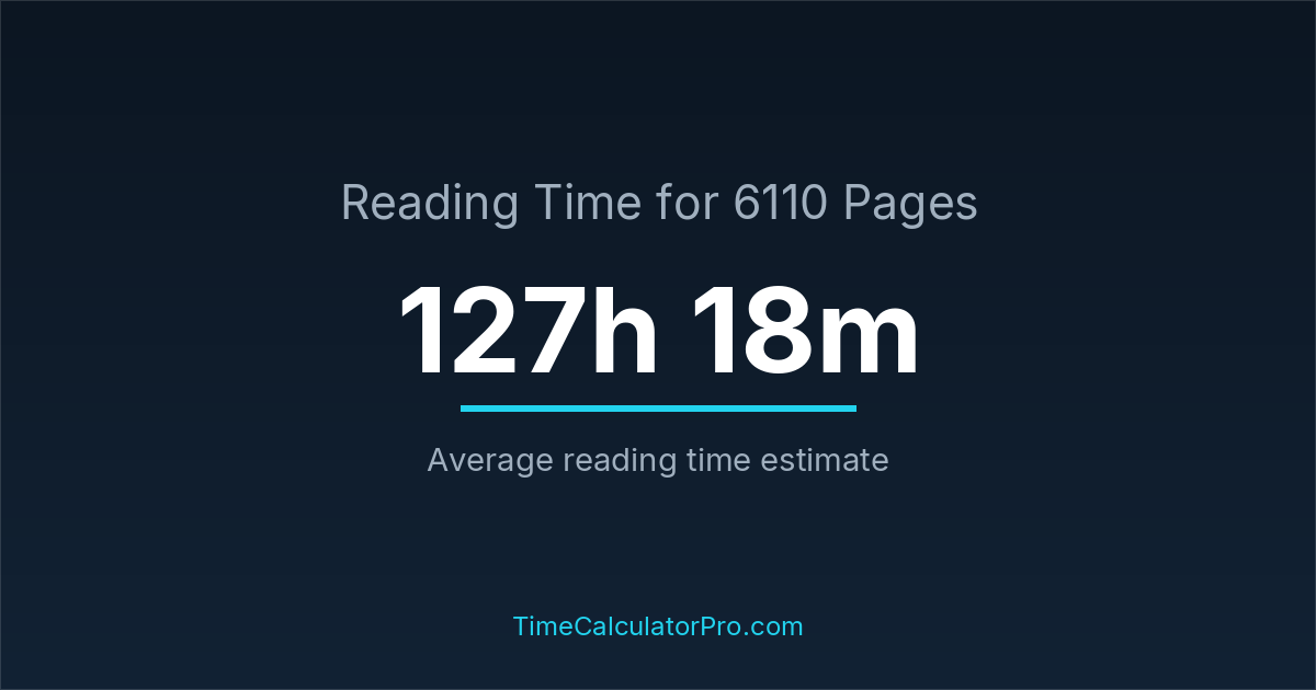 Reading 6110 pages usually takes approximately 127 hours and 18 minutes for the average reader, though this can vary depending on concentration and reading habits.