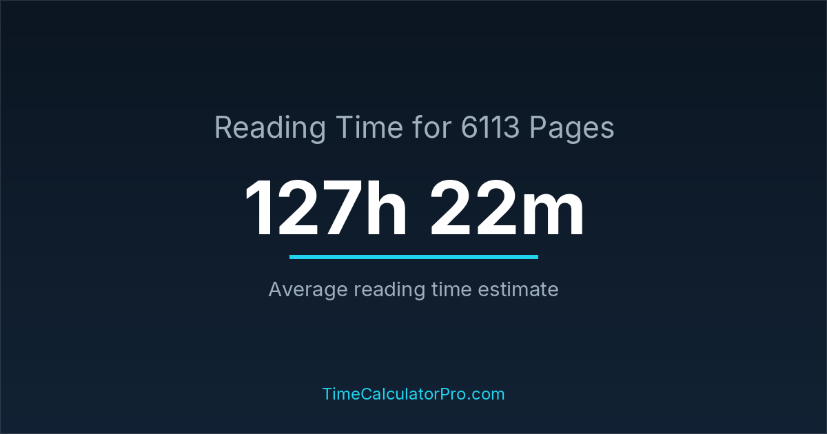 The average reading time for 6113 pages is about 127 hours and 22 minutes, but this can change depending on the difficulty of the text.