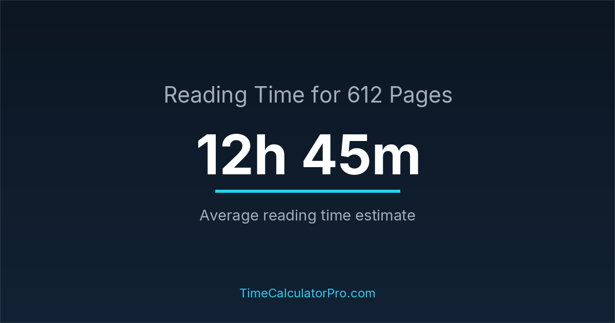 The average reading time for 612 pages is about 12 hours and 45 minutes, but this can change depending on the difficulty of the text.