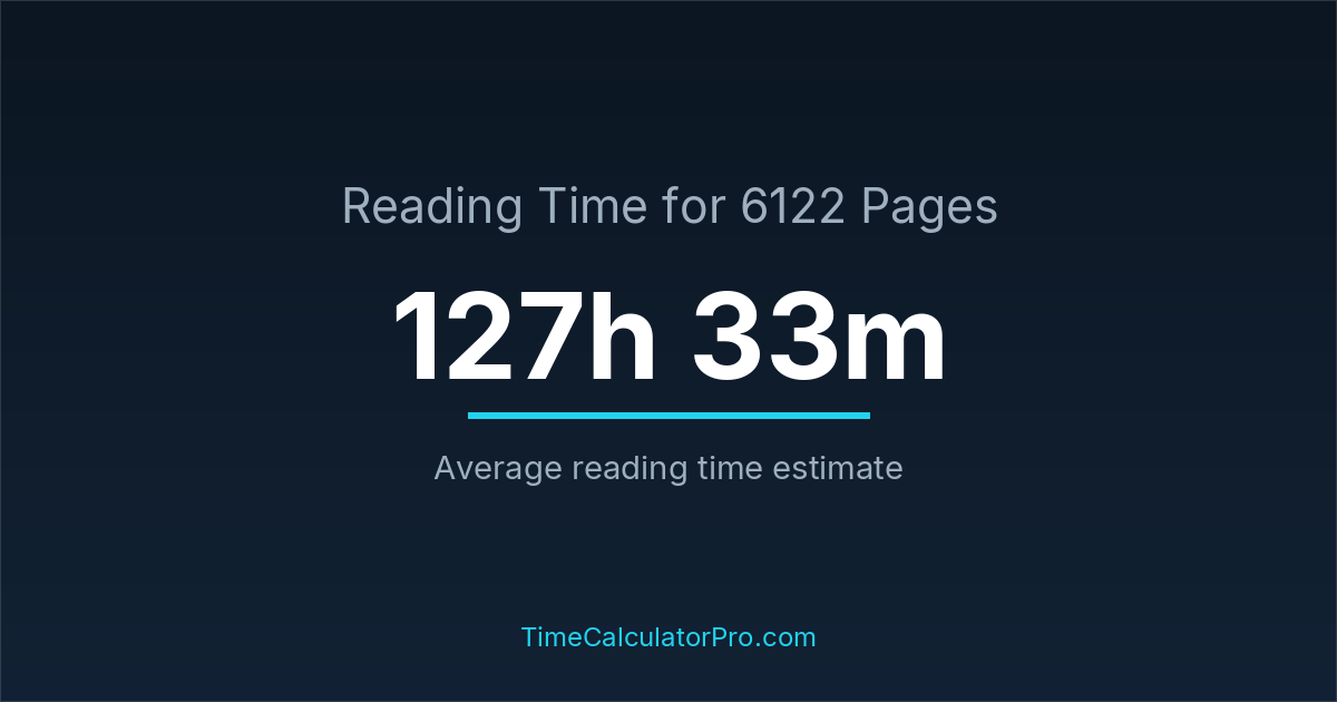 Using a reading time calculator, you can estimate that 6122 pages will take around 127 hours and 33 minutes to complete.