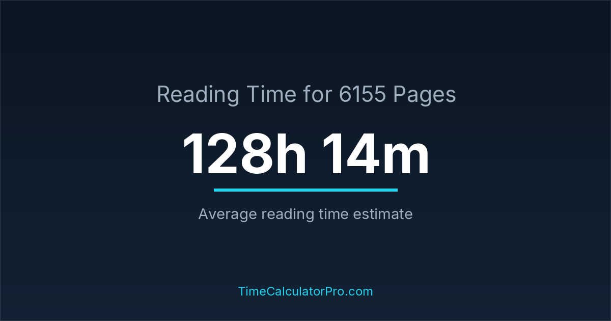 Reading 6155 pages usually takes approximately 128 hours and 14 minutes for the average reader, though this can vary depending on concentration and reading habits.