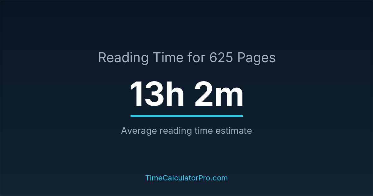Reading 625 pages takes about 13 hours and 2 minutes.