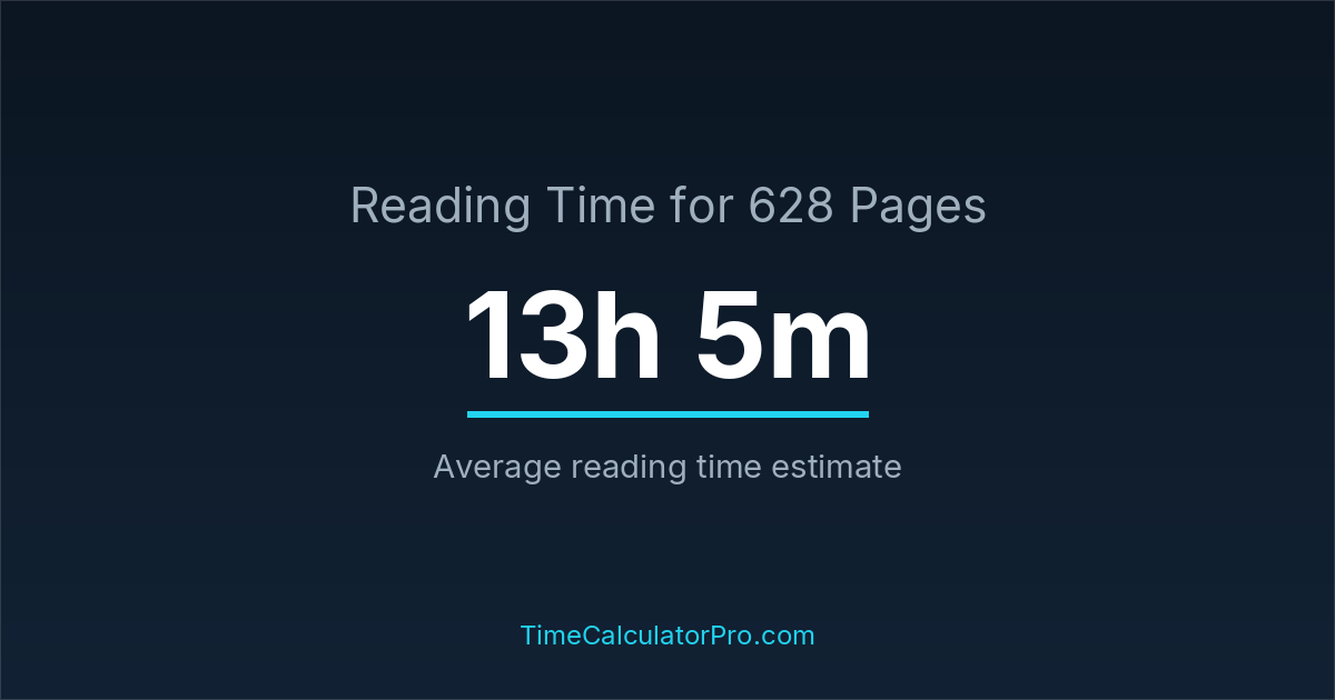 Reading 628 pages takes about 13 hours and 5 minutes.