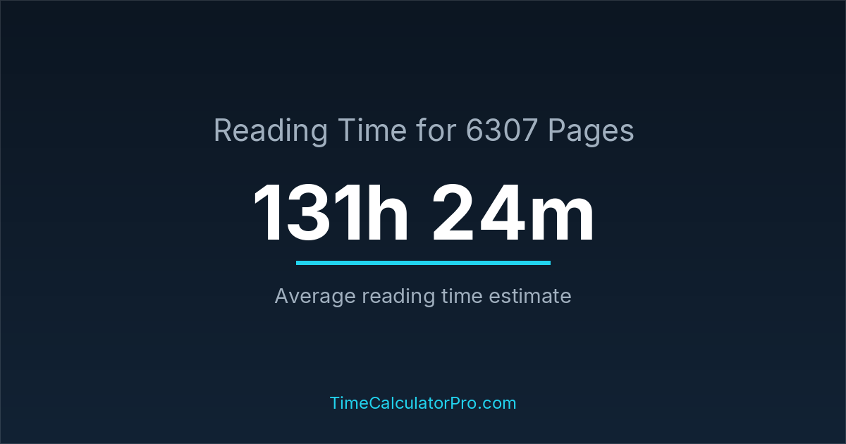 If you read at an average speed of 200 words per minute, reading 6307 pages will take approximately 131 hours and 24 minutes. This estimate assumes around 250 words per page, which is typical for most books.