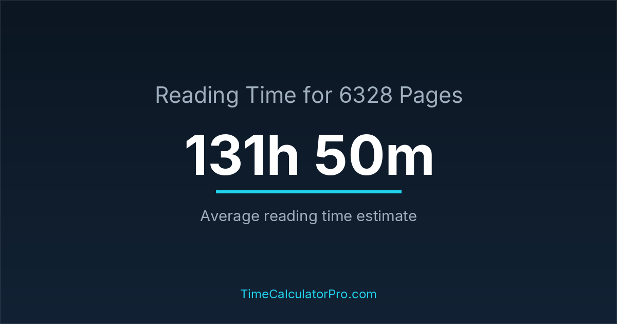 If you are wondering how long it takes to read 6328 pages, the estimated reading time is roughly 131 hours and 50 minutes based on common reading speed averages.