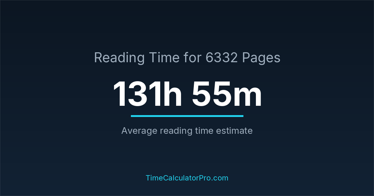 If you read at an average speed of 200 words per minute, reading 6332 pages will take approximately 131 hours and 55 minutes. This estimate assumes around 250 words per page, which is typical for most books.