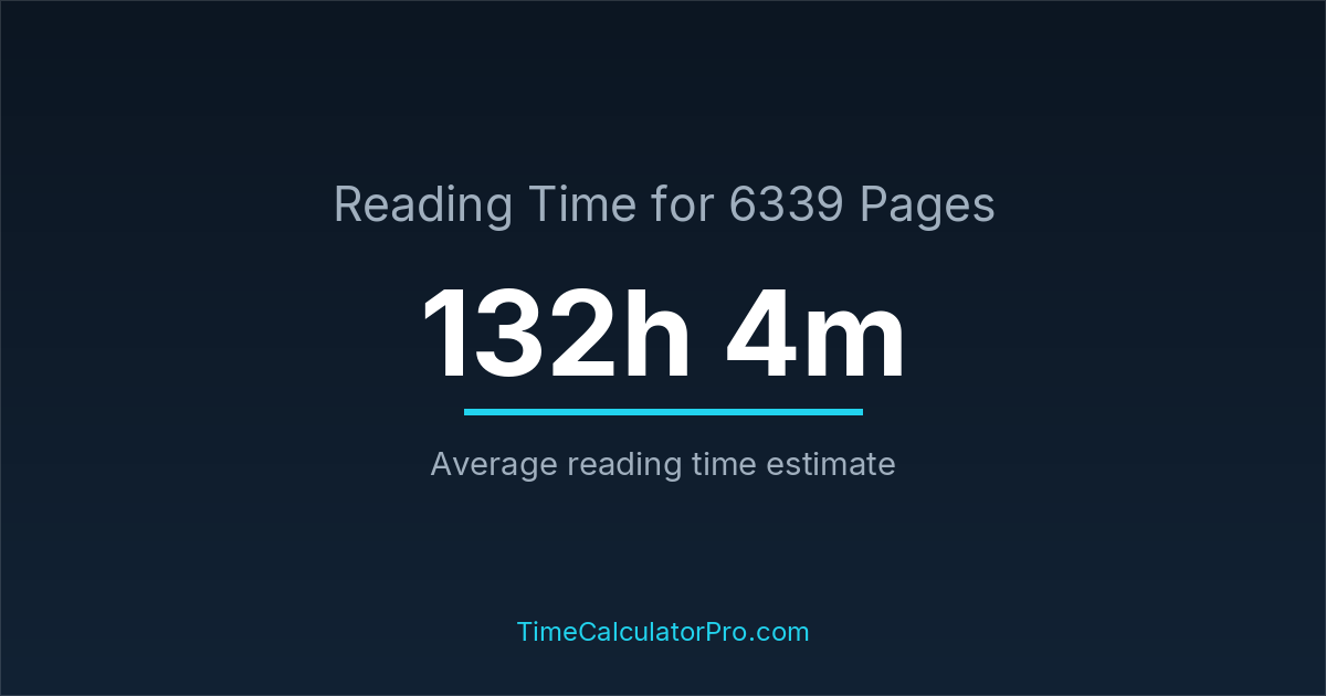If you are wondering how long it takes to read 6339 pages, the estimated reading time is roughly 132 hours and 4 minutes based on common reading speed averages.