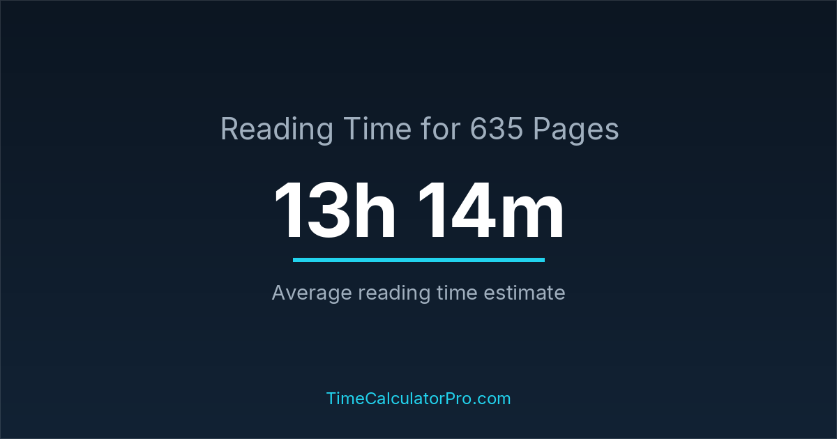If you are wondering how long it takes to read 635 pages, the estimated reading time is roughly 13 hours and 14 minutes based on common reading speed averages.