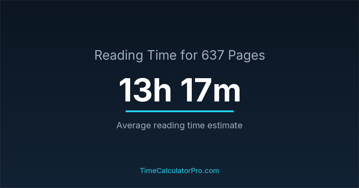 Reading 637 pages takes about 13 hours and 17 minutes.
