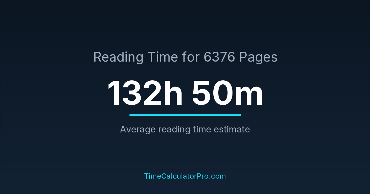 On average, reading 6376 pages may require about 132 hours and 50 minutes for most readers, assuming a standard reading pace and moderate difficulty.
