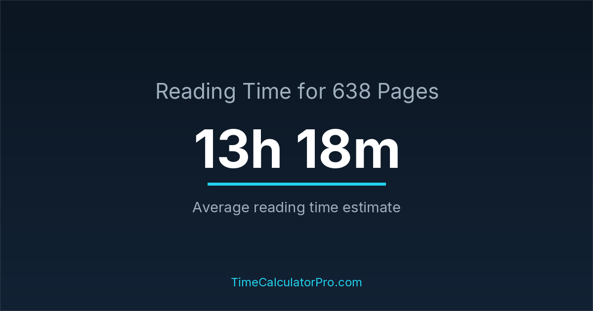 Reading 638 pages takes about 13 hours and 18 minutes.