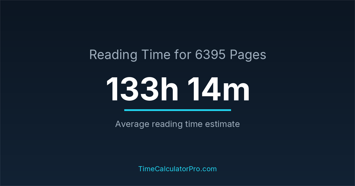 The average reading time for 6395 pages is about 133 hours and 14 minutes, but this can change depending on the difficulty of the text.