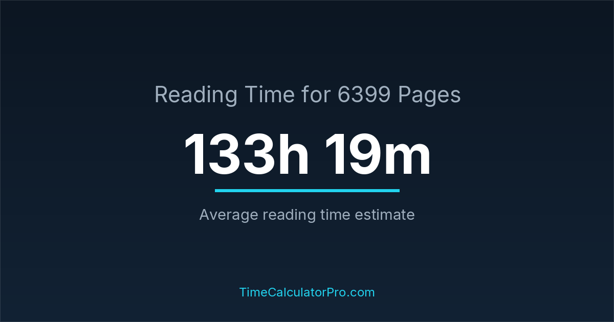 Reading 6399 pages usually takes approximately 133 hours and 19 minutes for the average reader, though this can vary depending on concentration and reading habits.