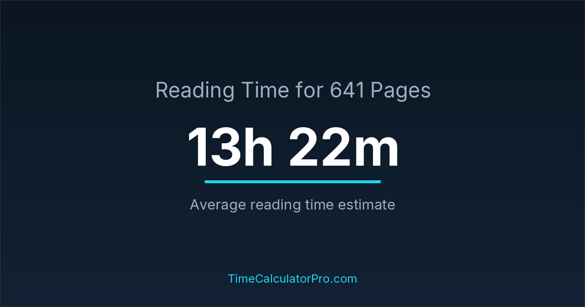 Reading 641 pages takes about 13 hours and 22 minutes.