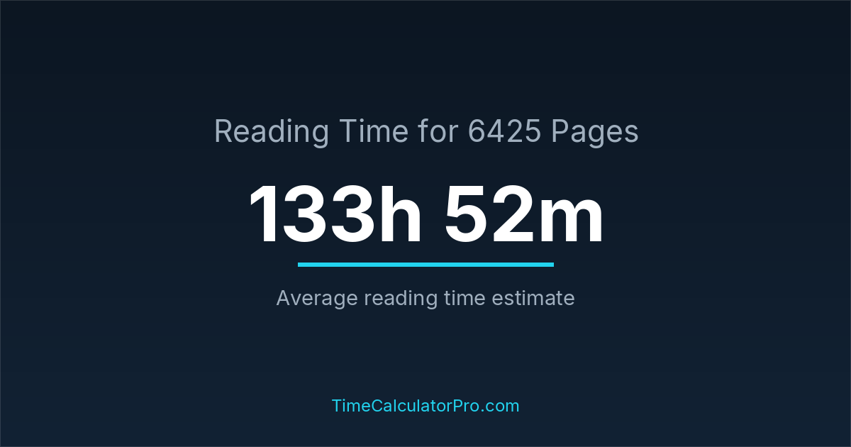 Many readers ask how long it takes to read 6425 pages, and the answer is typically around 133 hours and 52 minutes depending on reading speed.