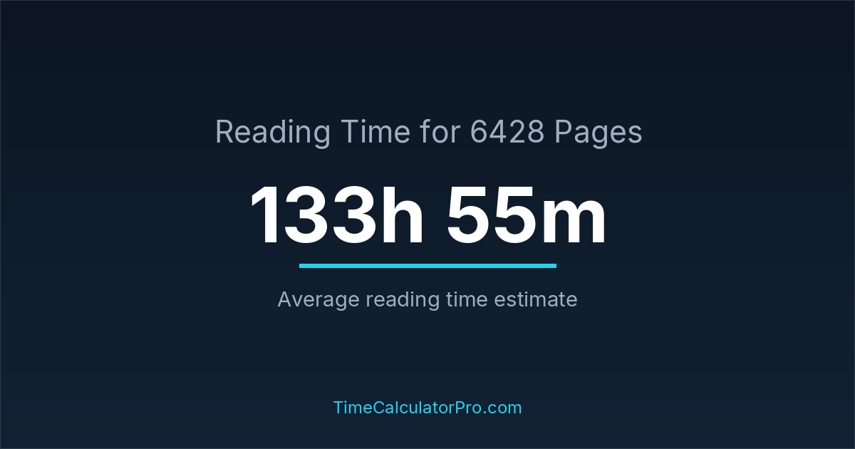 If you read at an average speed of 200 words per minute, reading 6428 pages will take approximately 133 hours and 55 minutes. This estimate assumes around 250 words per page, which is typical for most books.