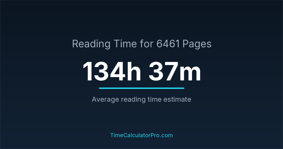 If you read at an average speed of 200 words per minute, reading 6461 pages will take approximately 134 hours and 37 minutes. This estimate assumes around 250 words per page, which is typical for most books.