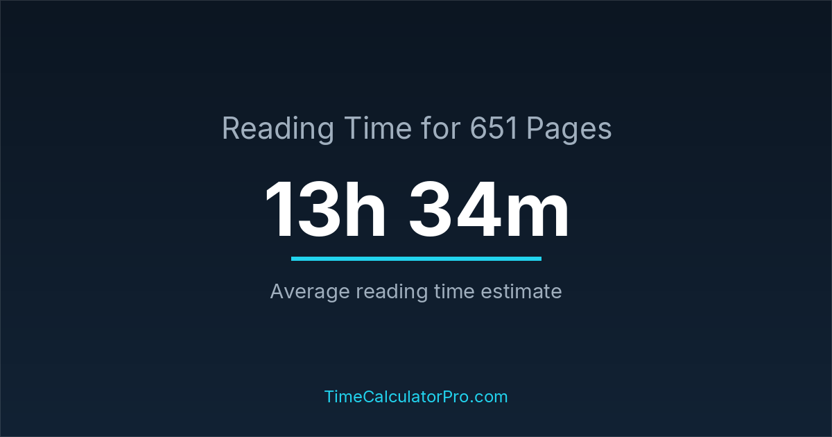 Reading 651 pages takes about 13 hours and 34 minutes.