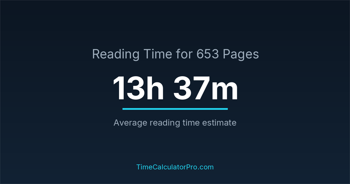 Reading 653 pages takes about 13 hours and 37 minutes.