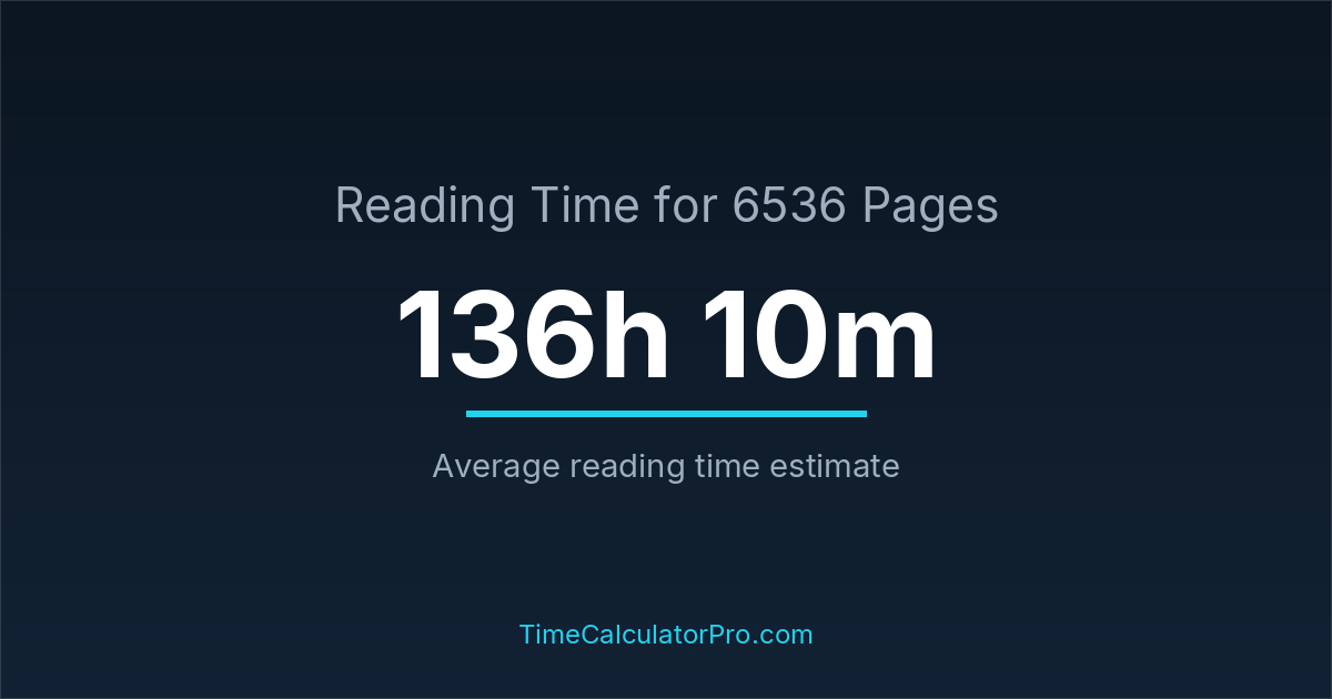 Reading 6536 pages usually takes approximately 136 hours and 10 minutes for the average reader, though this can vary depending on concentration and reading habits.