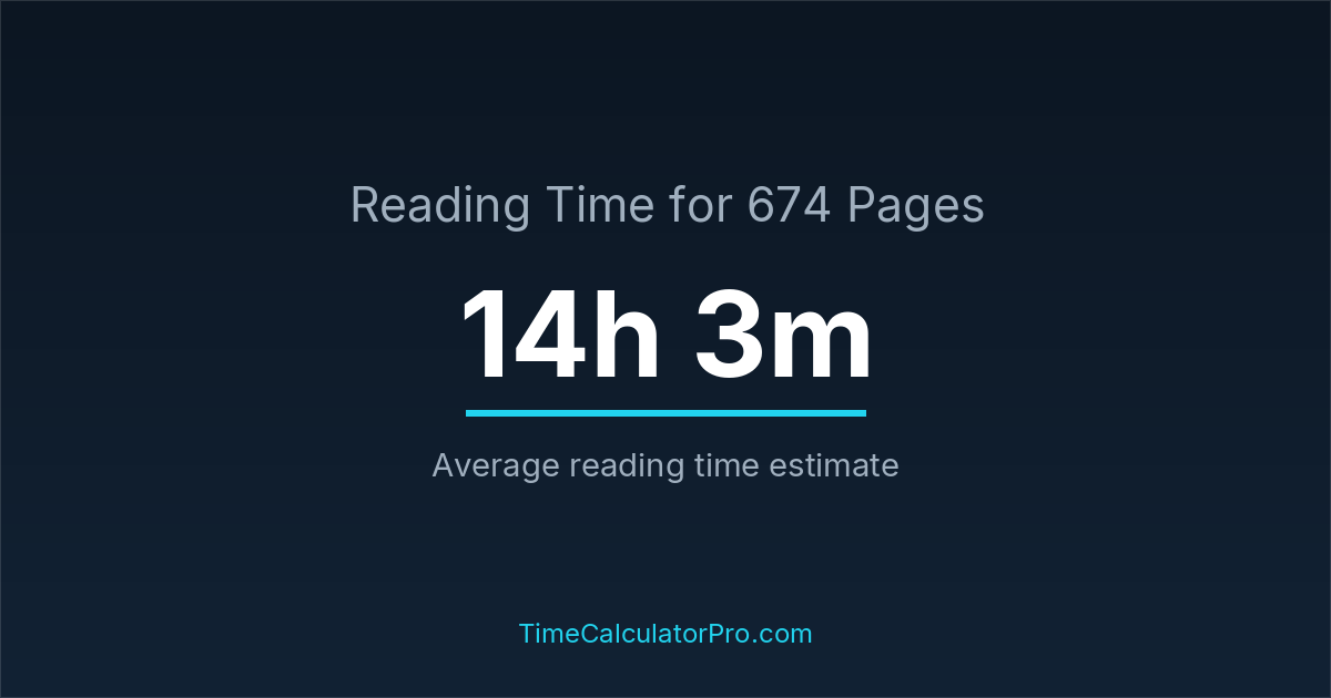 Reading 674 pages takes about 14 hours and 3 minutes.