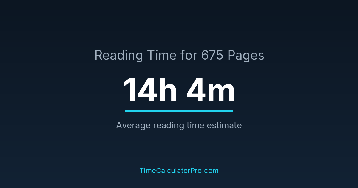 Reading 675 pages takes about 14 hours and 4 minutes.