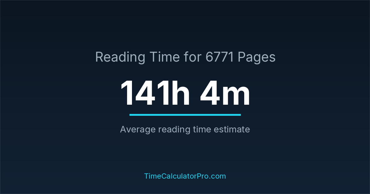 If you read at an average speed of 200 words per minute, reading 6771 pages will take approximately 141 hours and 4 minutes. This estimate assumes around 250 words per page, which is typical for most books.