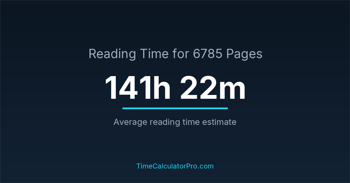If you read at an average speed of 200 words per minute, reading 6785 pages will take approximately 141 hours and 22 minutes. This estimate assumes around 250 words per page, which is typical for most books.