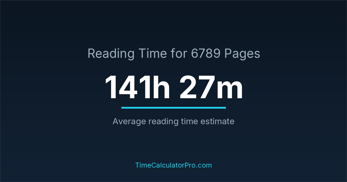If you read at an average speed of 200 words per minute, reading 6789 pages will take approximately 141 hours and 27 minutes. This estimate assumes around 250 words per page, which is typical for most books.