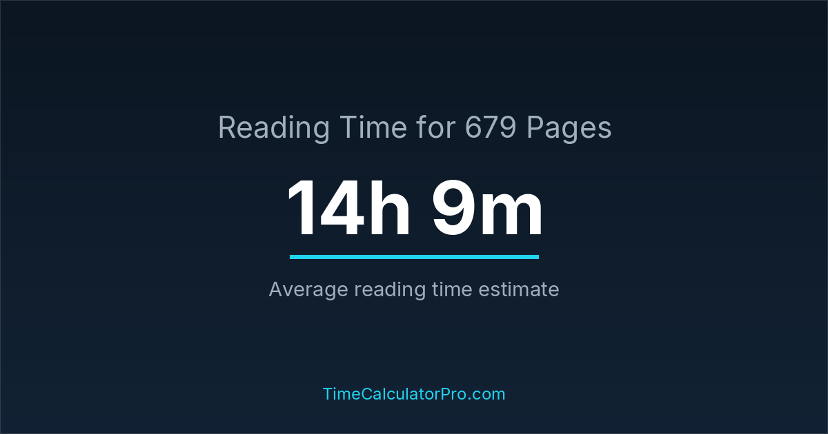 Reading 679 pages takes about 14 hours and 9 minutes.