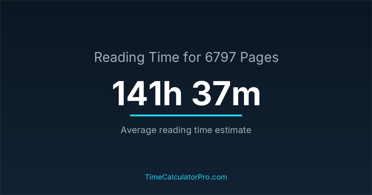 If you read at an average speed of 200 words per minute, reading 6797 pages will take approximately 141 hours and 37 minutes. This estimate assumes around 250 words per page, which is typical for most books.