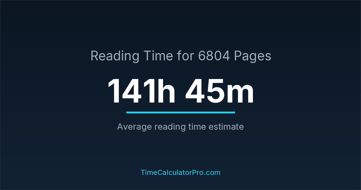 If you read at an average speed of 200 words per minute, reading 6804 pages will take approximately 141 hours and 45 minutes. This estimate assumes around 250 words per page, which is typical for most books.
