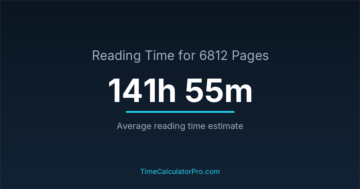 Using a reading time calculator, you can estimate that 6812 pages will take around 141 hours and 55 minutes to complete.