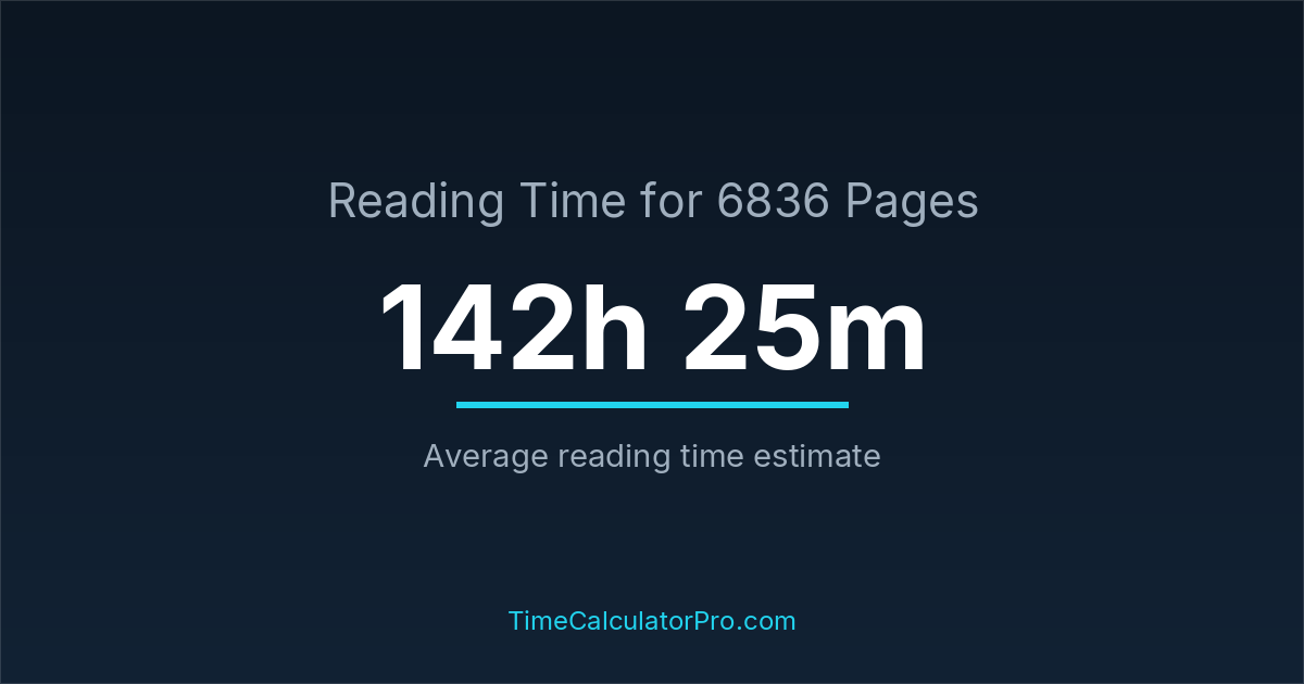 Using a reading time calculator, you can estimate that 6836 pages will take around 142 hours and 25 minutes to complete.