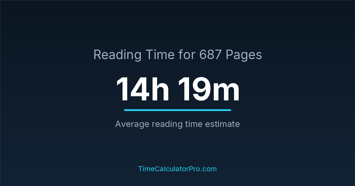 Reading 687 pages takes about 14 hours and 19 minutes.