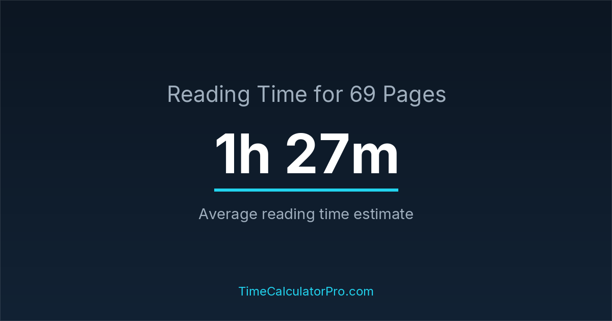 If you read at an average speed of 200 words per minute, reading 69 pages will take approximately 1 hours and 27 minutes. This estimate assumes around 250 words per page, which is typical for most books.