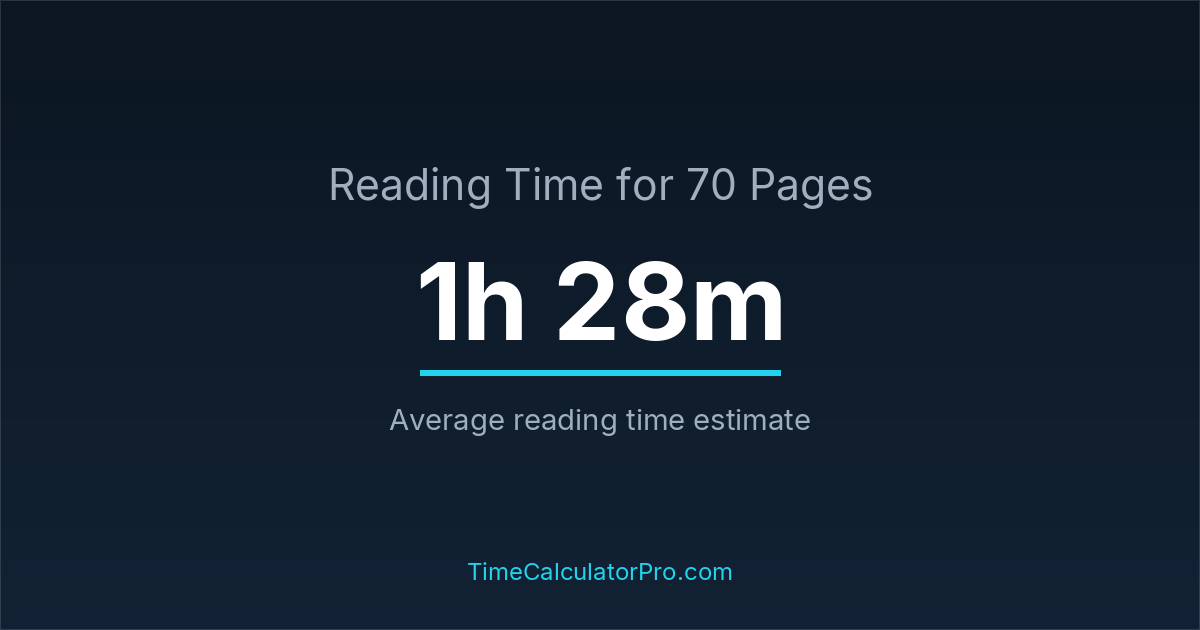 Based on standard reading speeds, reading 70 pages would take roughly 1 hours and 28 minutes under normal conditions.