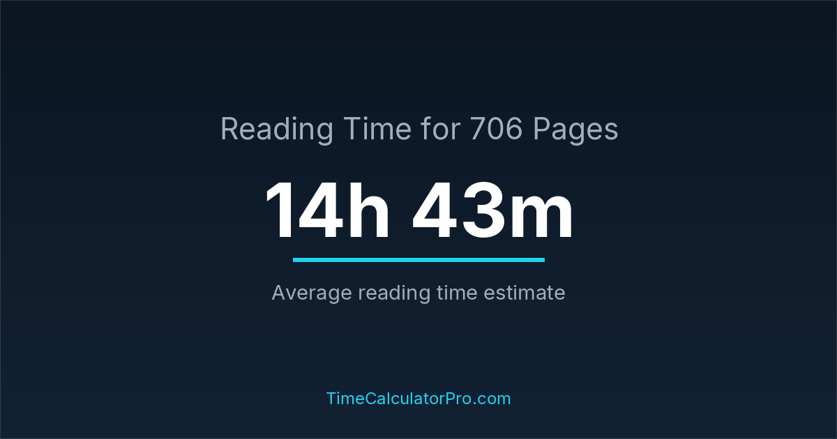 Reading 706 pages takes about 14 hours and 43 minutes.
