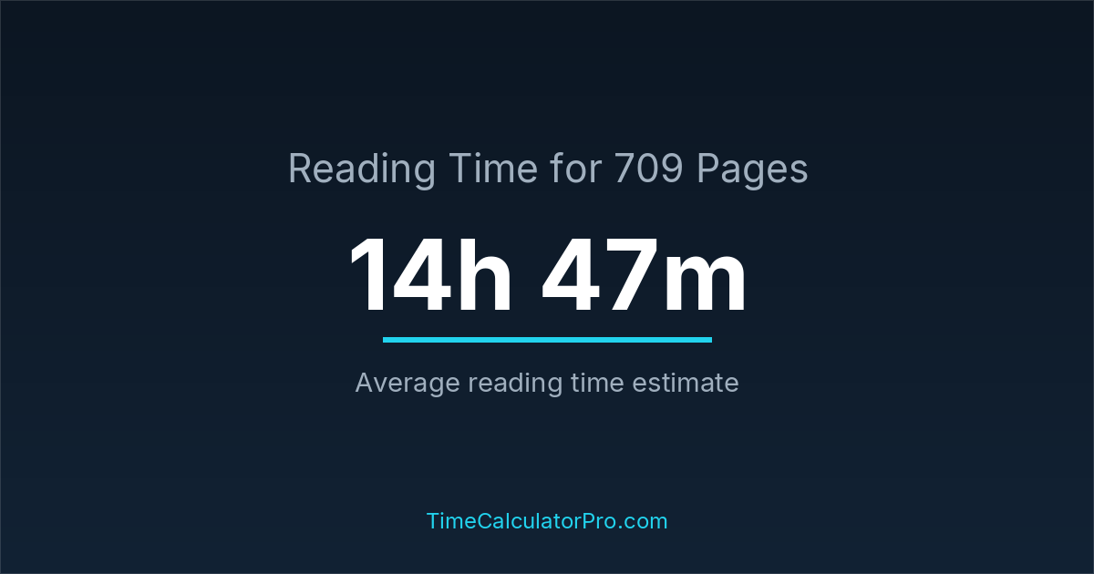 Based on standard reading speeds, reading 709 pages would take roughly 14 hours and 47 minutes under normal conditions.