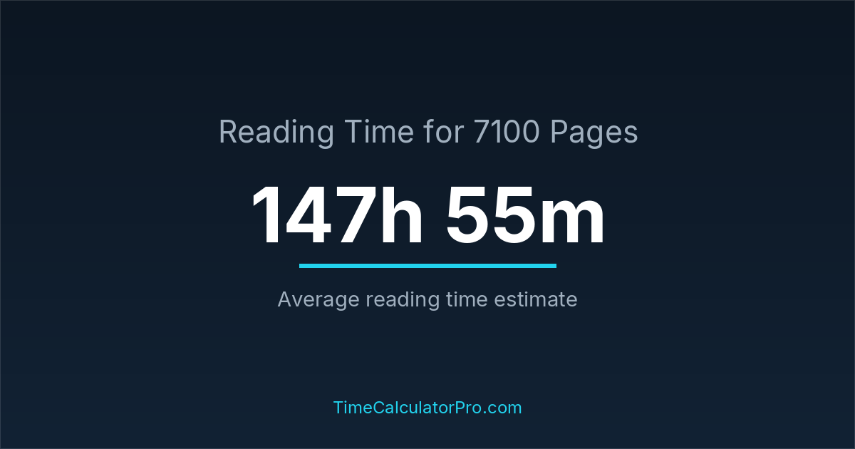 If you read at an average speed of 200 words per minute, reading 7100 pages will take approximately 147 hours and 55 minutes. This estimate assumes around 250 words per page, which is typical for most books.