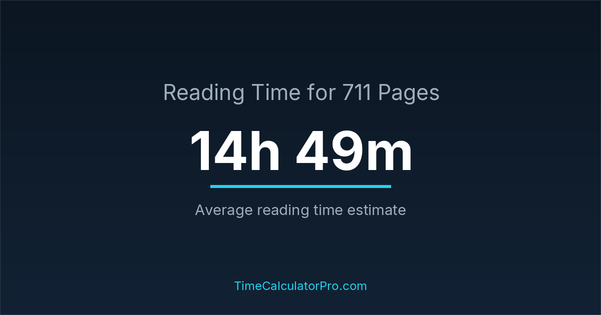 Using a reading time calculator, you can estimate that 711 pages will take around 14 hours and 49 minutes to complete.