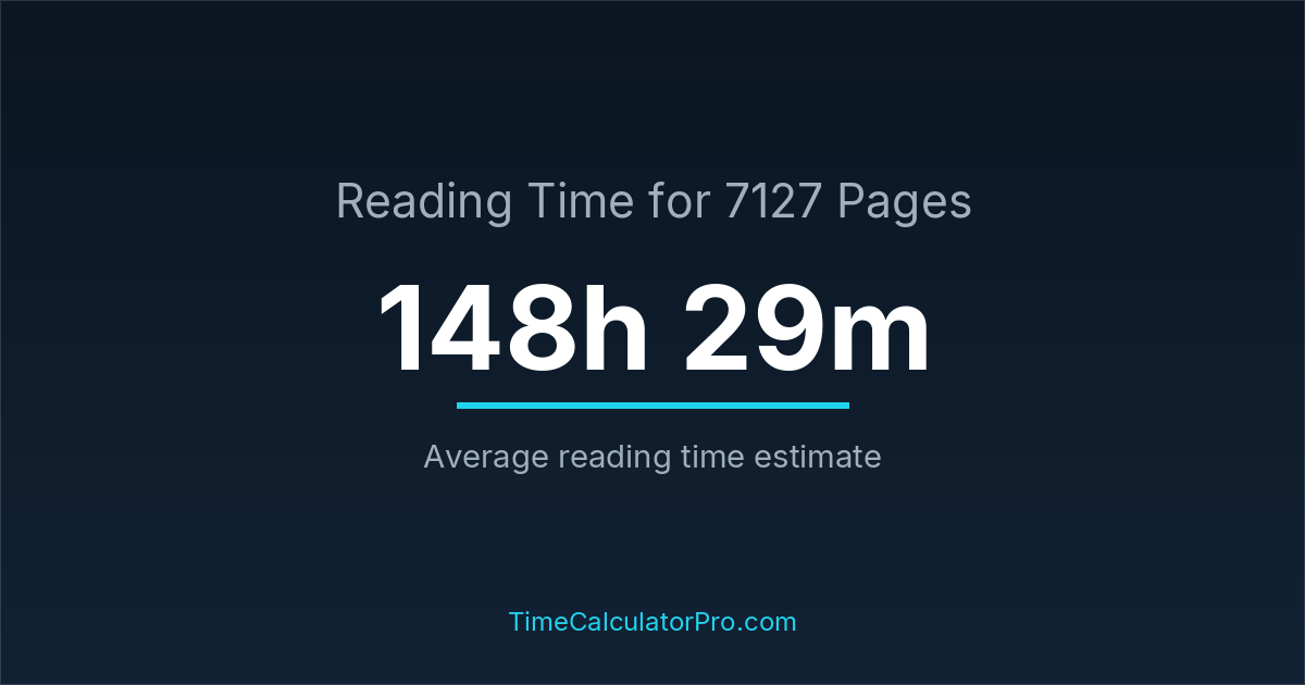 If you read at an average speed of 200 words per minute, reading 7127 pages will take approximately 148 hours and 29 minutes. This estimate assumes around 250 words per page, which is typical for most books.