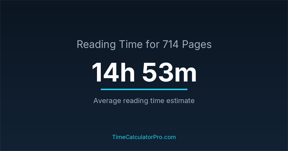 Reading 714 pages takes about 14 hours and 53 minutes.