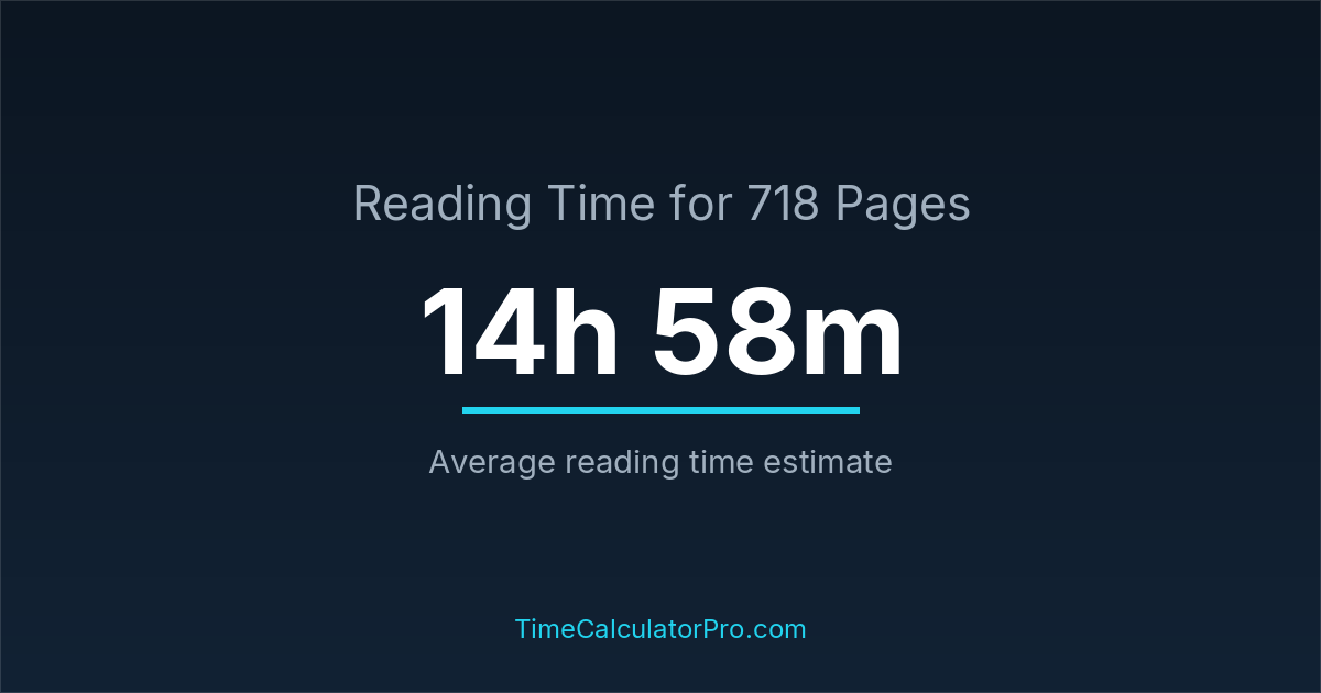 If you read at an average speed of 200 words per minute, reading 718 pages will take approximately 14 hours and 58 minutes. This estimate assumes around 250 words per page, which is typical for most books.