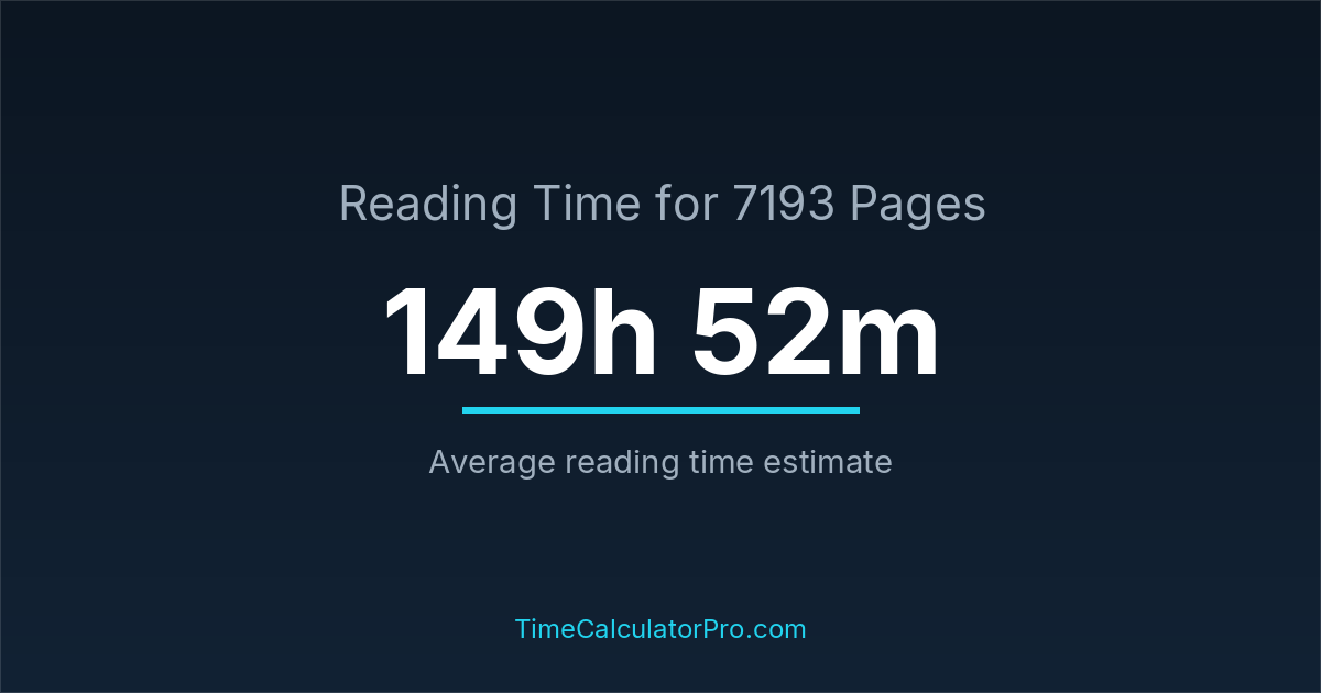 If you read at an average speed of 200 words per minute, reading 7193 pages will take approximately 149 hours and 52 minutes. This estimate assumes around 250 words per page, which is typical for most books.