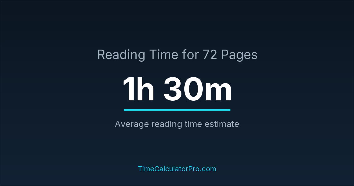 Estimating how long it takes to read 72 pages can help you plan your reading schedule, with an average time of 1 hours and 30 minutes.