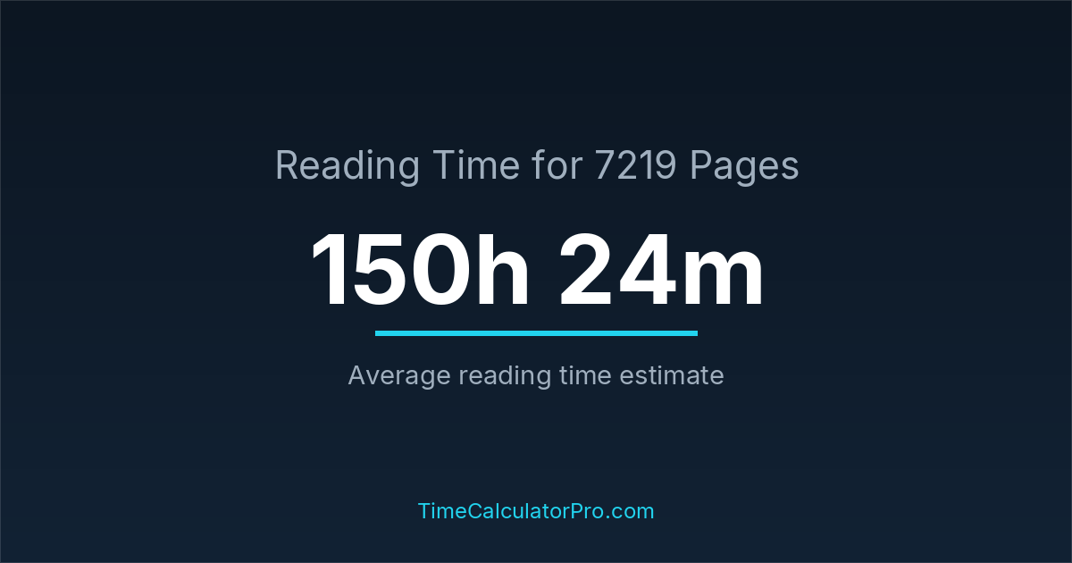If you are wondering how long it takes to read 7219 pages, the estimated reading time is roughly 150 hours and 24 minutes based on common reading speed averages.