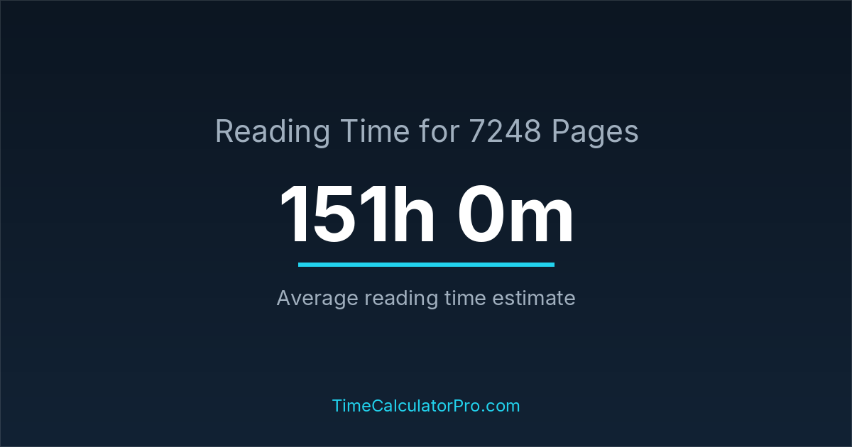 The average reading time for 7248 pages is about 151 hours and 0 minutes, but this can change depending on the difficulty of the text.