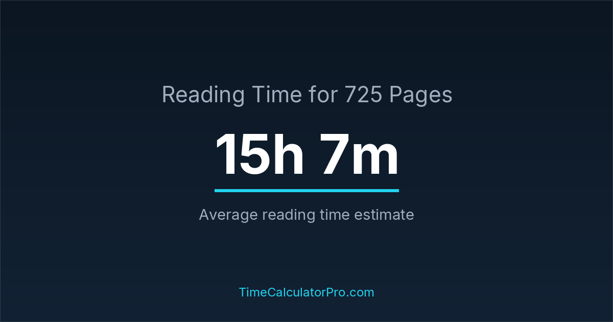 Reading 725 pages takes about 15 hours and 7 minutes.