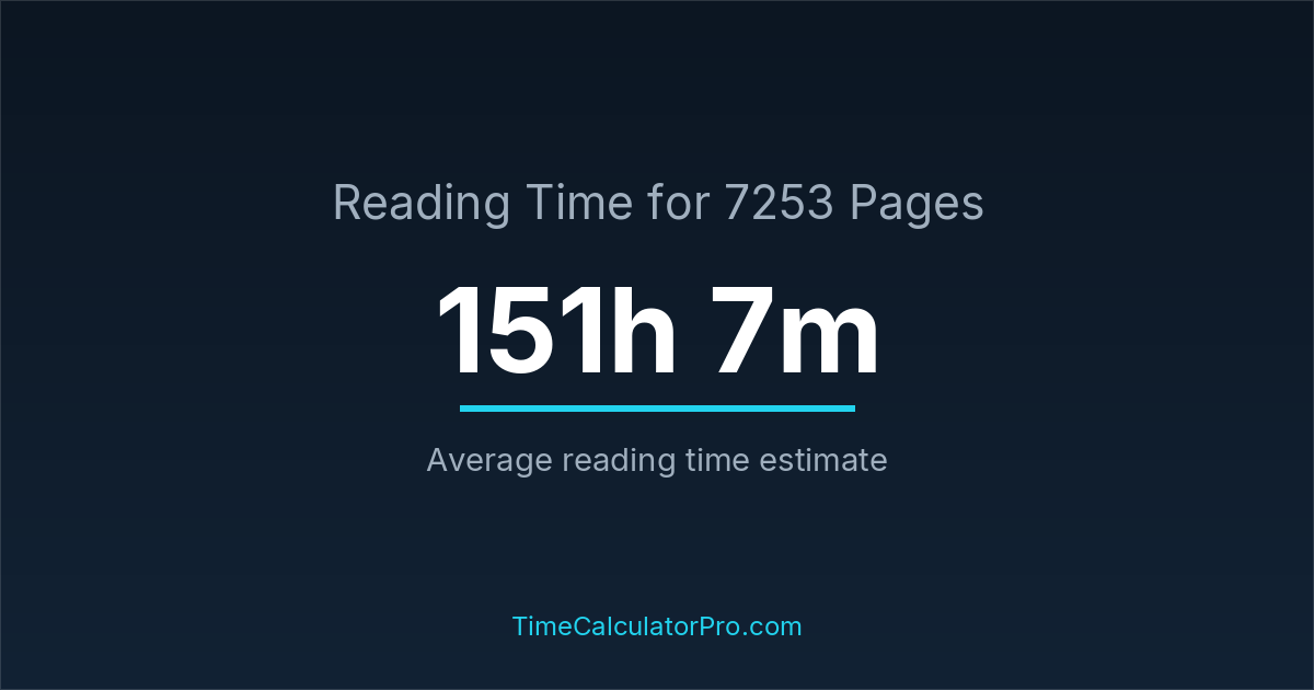Estimating how long it takes to read 7253 pages can help you plan your reading schedule, with an average time of 151 hours and 7 minutes.